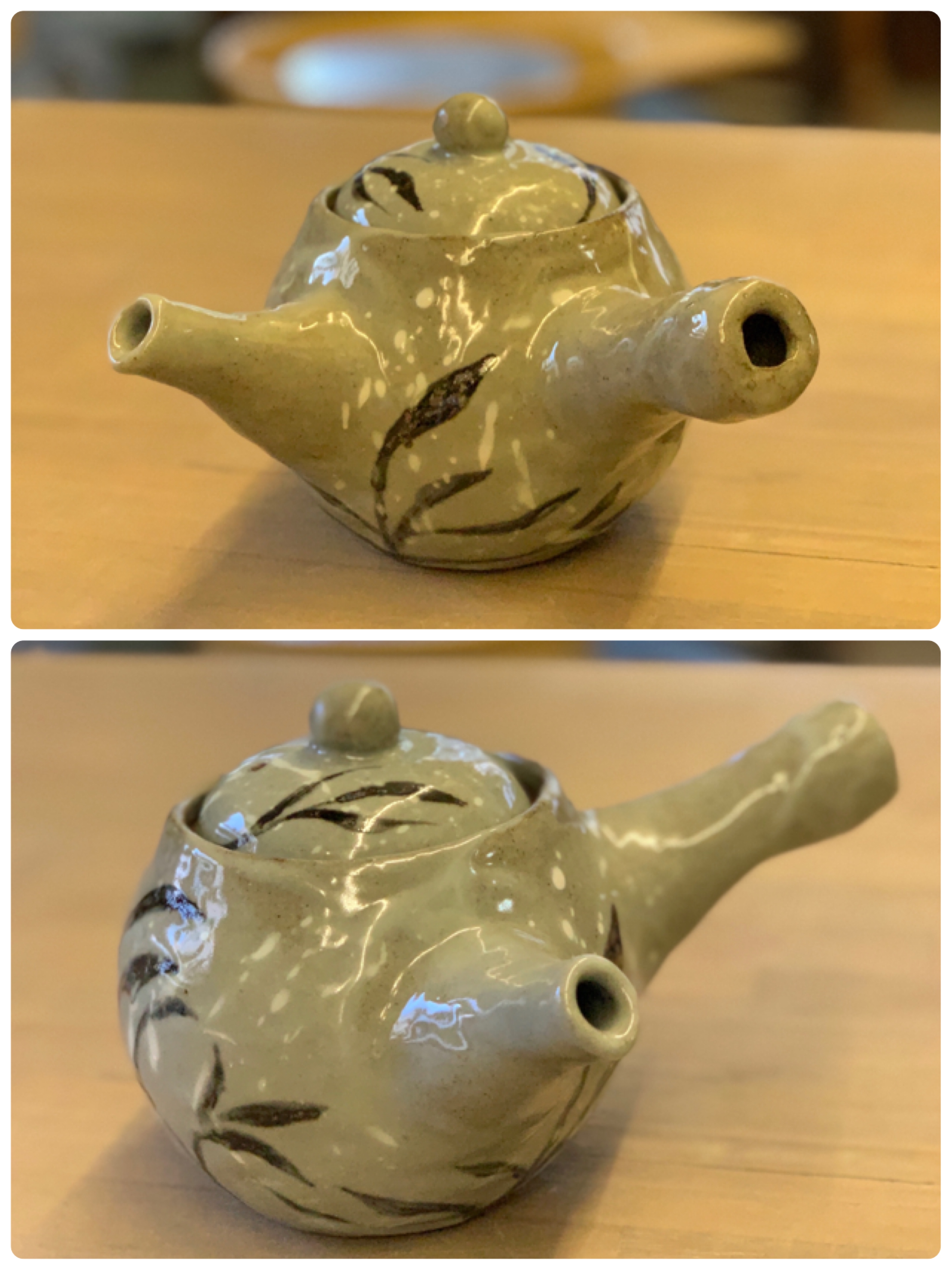 生徒さん作品 急須 2020-10-07 急須 手びねり技法で成形された急須です。 白マット釉を所々に散りばめて鉄絵で穂を描いて石灰釉で仕上げで還元焼成で焼いています。 持ち易い取っ手でした。 この手の作品は使い勝手の機能がしっかりと基準に達しているかで普段遣いの使用頻度に大きく影響しますよね。体験談。 #急須 #お茶 #陶芸作品 #陶芸教室 « 前の記事へ | 次の記事へ »