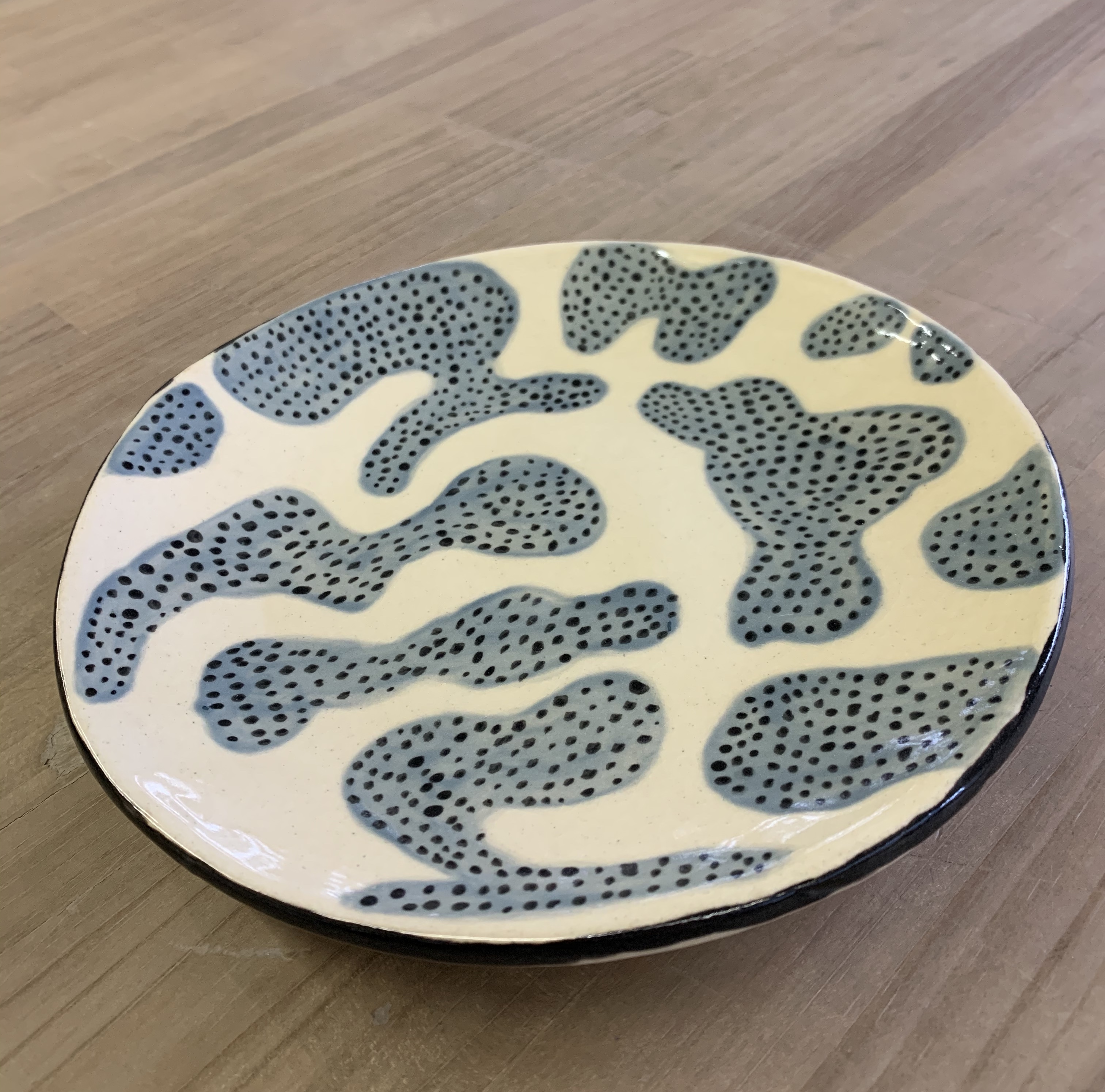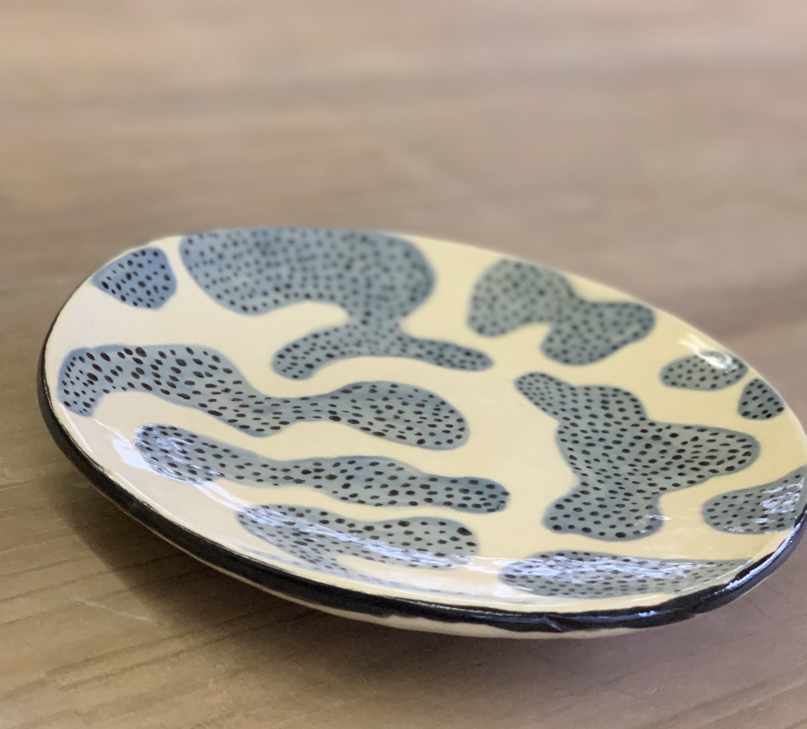 生徒さん作品 7寸丸皿 2020-11-15 個性的な模様を描かれた7寸丸皿です。 絵の具でアメーバーのような模様を描いて中にドット柄を散りばめています。 参考にされた画像がありましたが見事にそっくりに再現出来てました。 使い勝手良さそうなサイズ感なので重宝しそうですね。 « 前の記事へ | 次の記事へ »