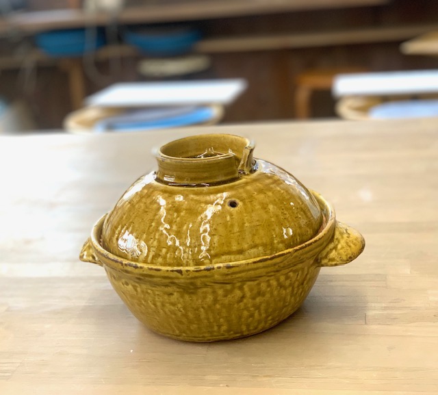 使用土:耐熱土、釉薬:飴釉、成形:手びねり成形、焼成:酸化焼成