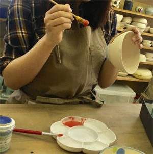 陶芸用の専用の絵の具でお好きに模様を描いて頂きます。