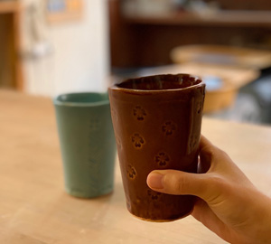※手びねり体験で作るコップではなかなか作れない背が高いコップを作れるのがこの体験コースの特長です。 仕上がりはとても軽く、プレゼントにされても十分に喜ばれますよ
